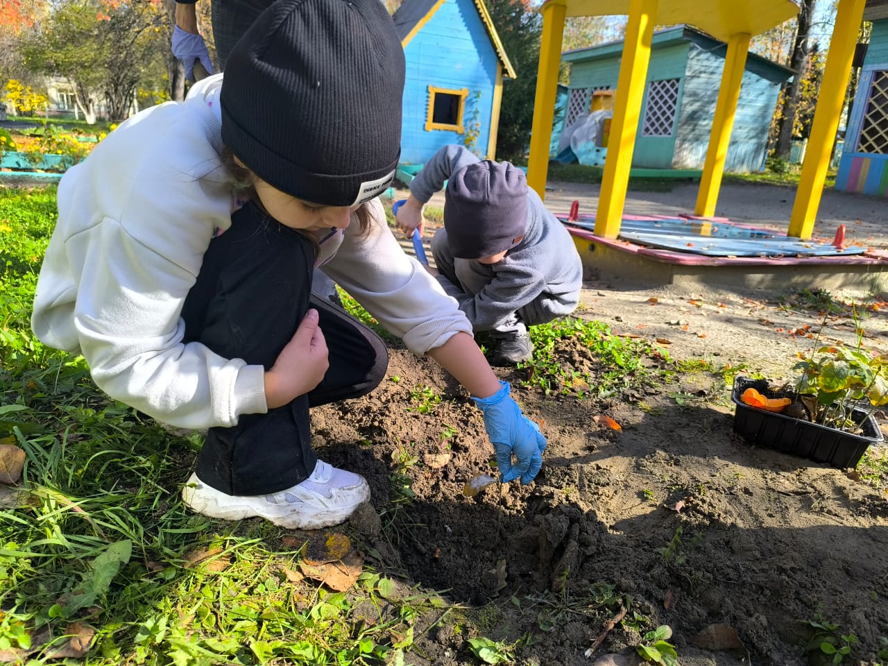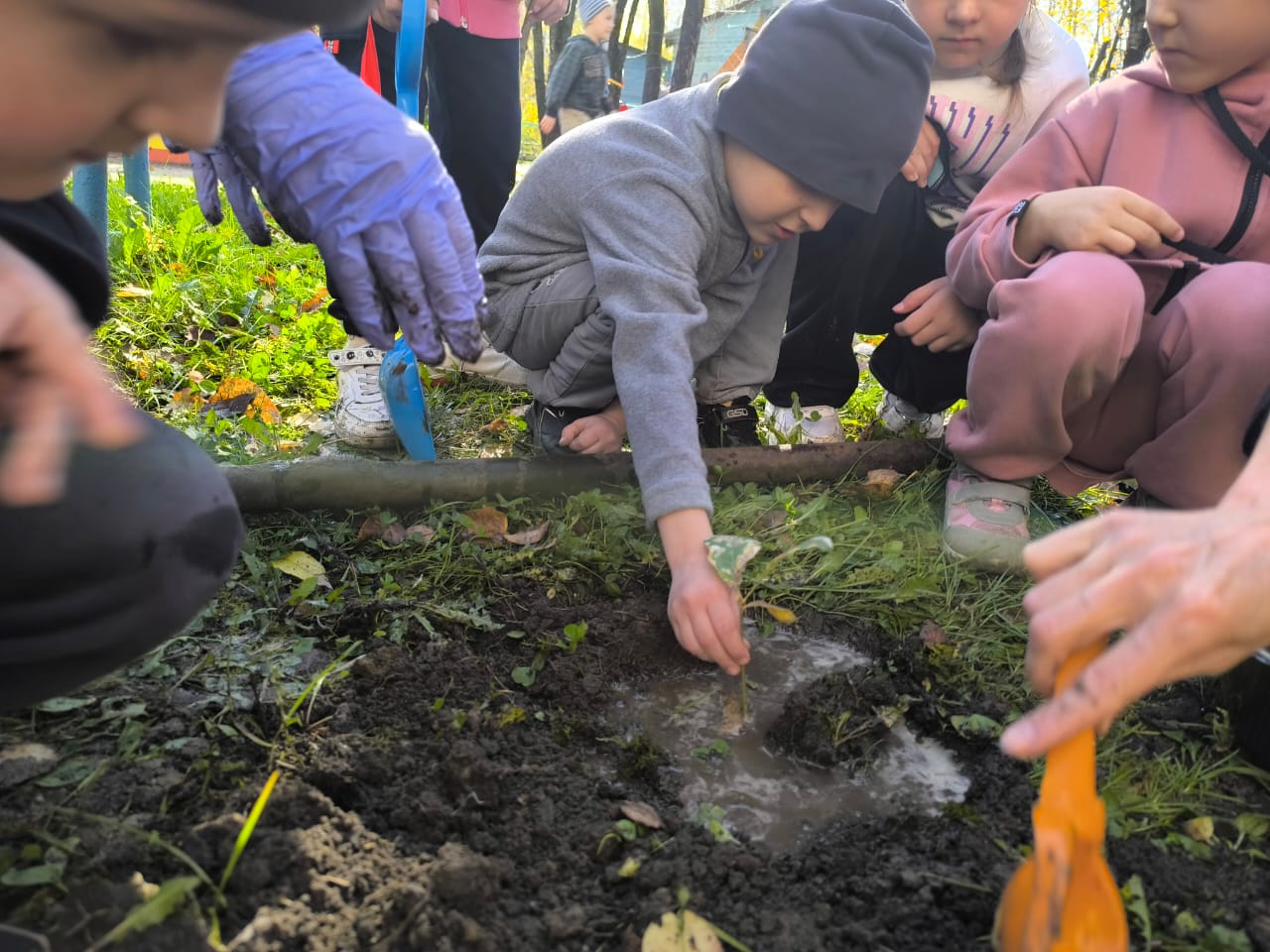 Мальчишки и девчонки вместе со взрослыми высадили на площадке детского сада пять маленьких дубочков. Заботливо утрамбовали и полили землю, поставили ограждения. Ребята обещали наблюдать за дубочками долгую осень, а весной и летом удобрять и рыхлить землю, чтобы маленькие дубочки вскоре превратились бы в могучие деревья.