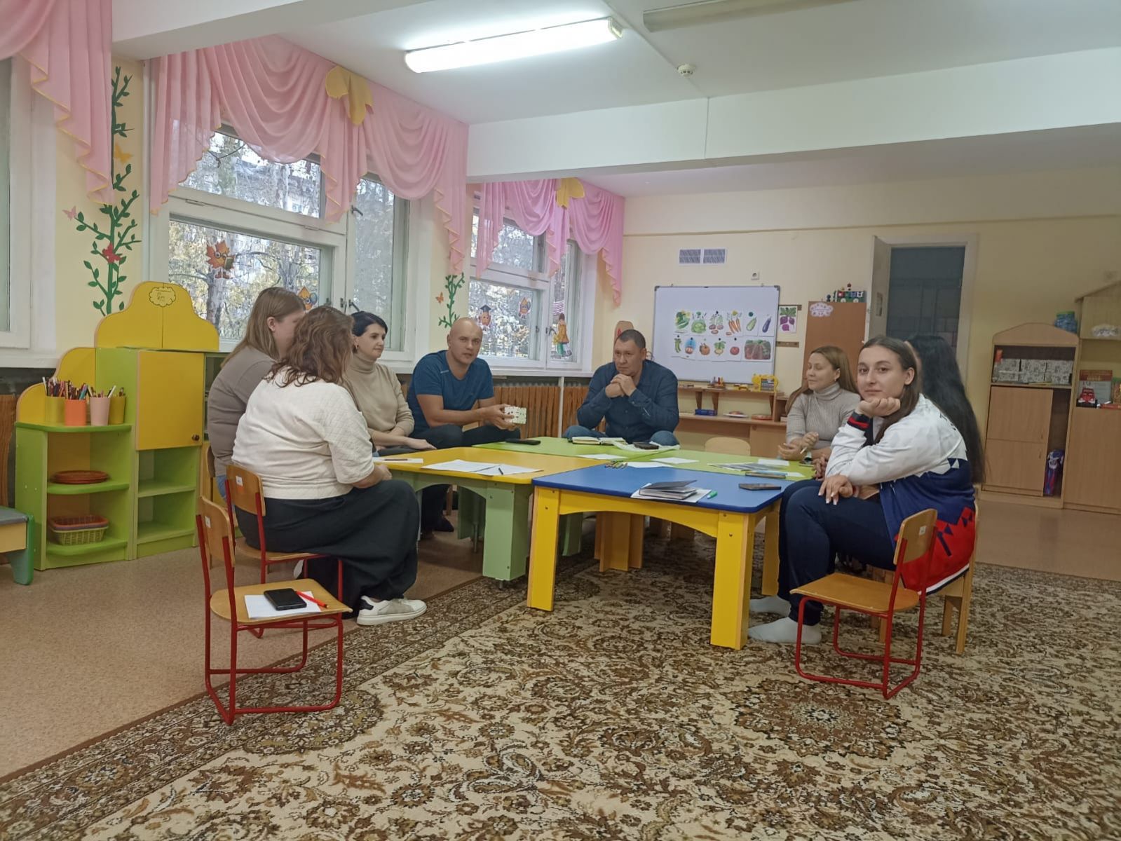В рамках работы Школы ответственного родительства прошла встреча с родителями вновь прибывших детей. Встреча "Давайте познакомимся" проходила в форме круглого стола, с применением инновационной технологии "Йохокуб". Родители познакомились друг с другом, с педагогами, обсудили задачи развития детей и возрастные особенности детей 3-4 лет, а также кризиса трёх лет.
