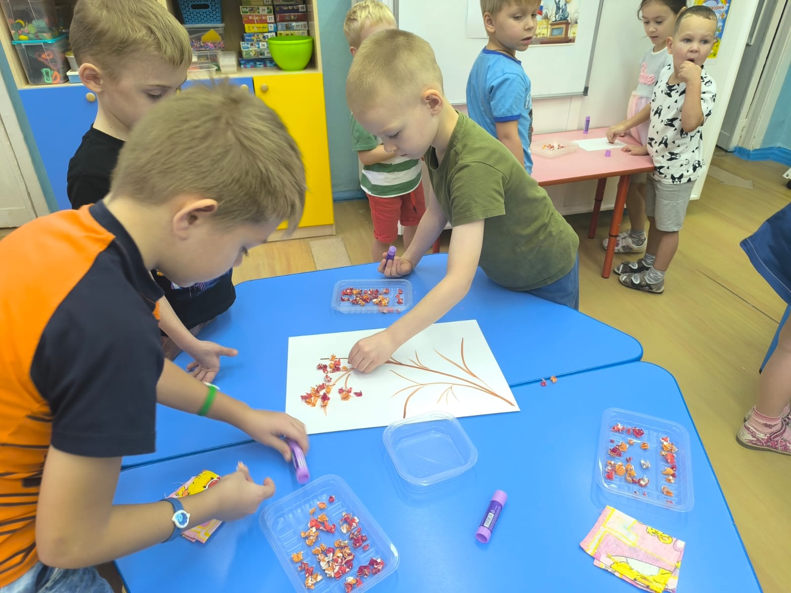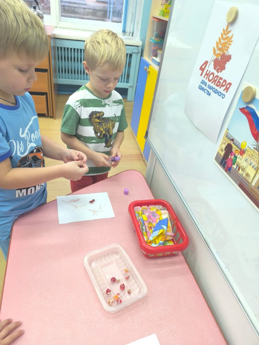 Для дошкольников был проведен мастер-класс по изготовлению ветки рябины из бумаги. Это увлекательное занятие помогло запомнить символику праздника и познакомиться с его историей.