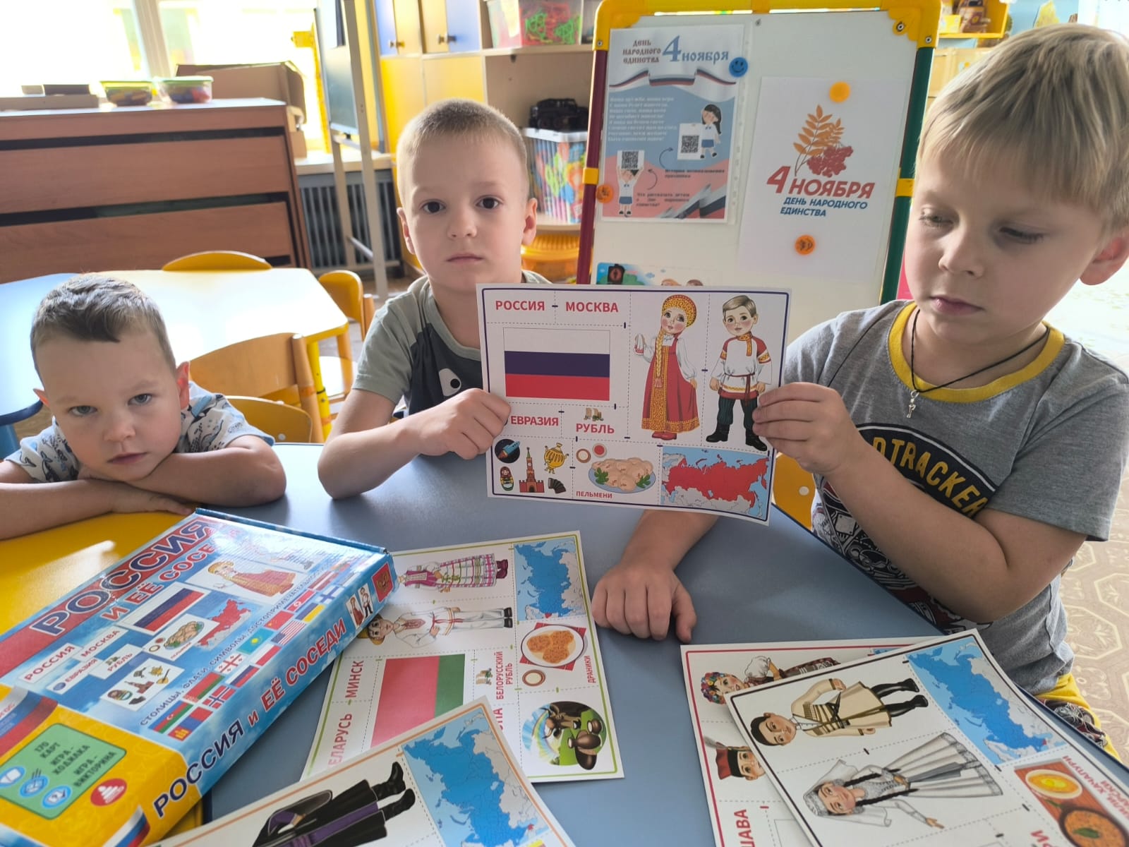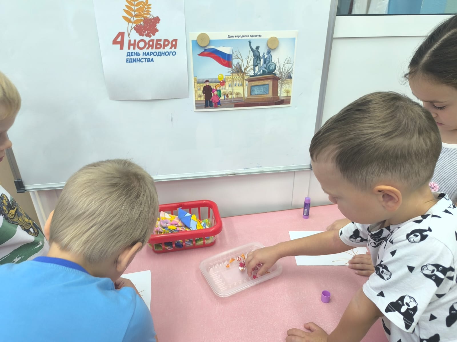 В преддверии Дня народного единства в нашем саду прошла встреча с сотрудниками центральной детской библиотеки. Библиотекарь рассказала ребятам о Минине и Пожарском, которые сыграли ключевую роль в объединении страны. Она объяснила, что этот праздник символизирует дружбу, единство и силу народа, когда все вместе достигают больших целей.