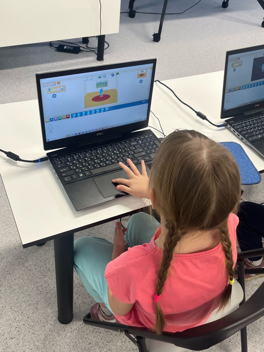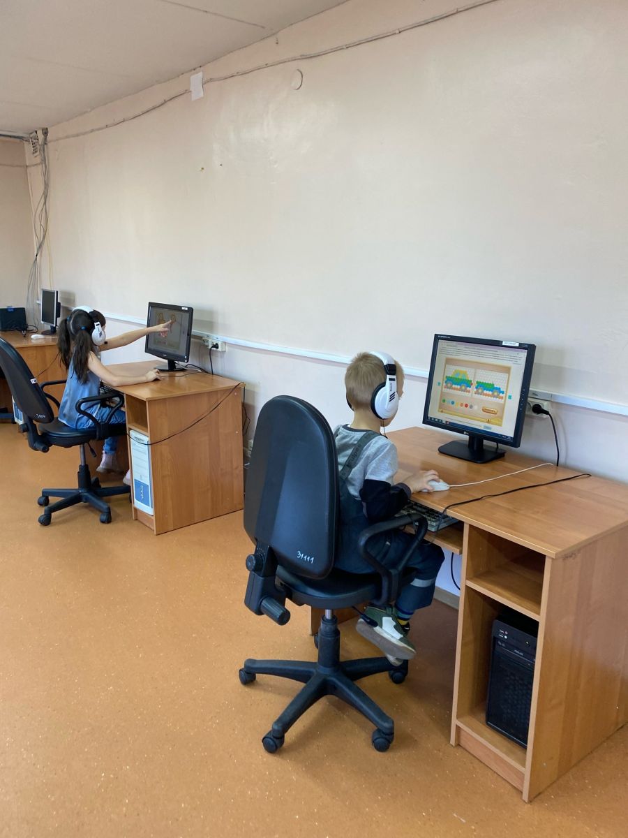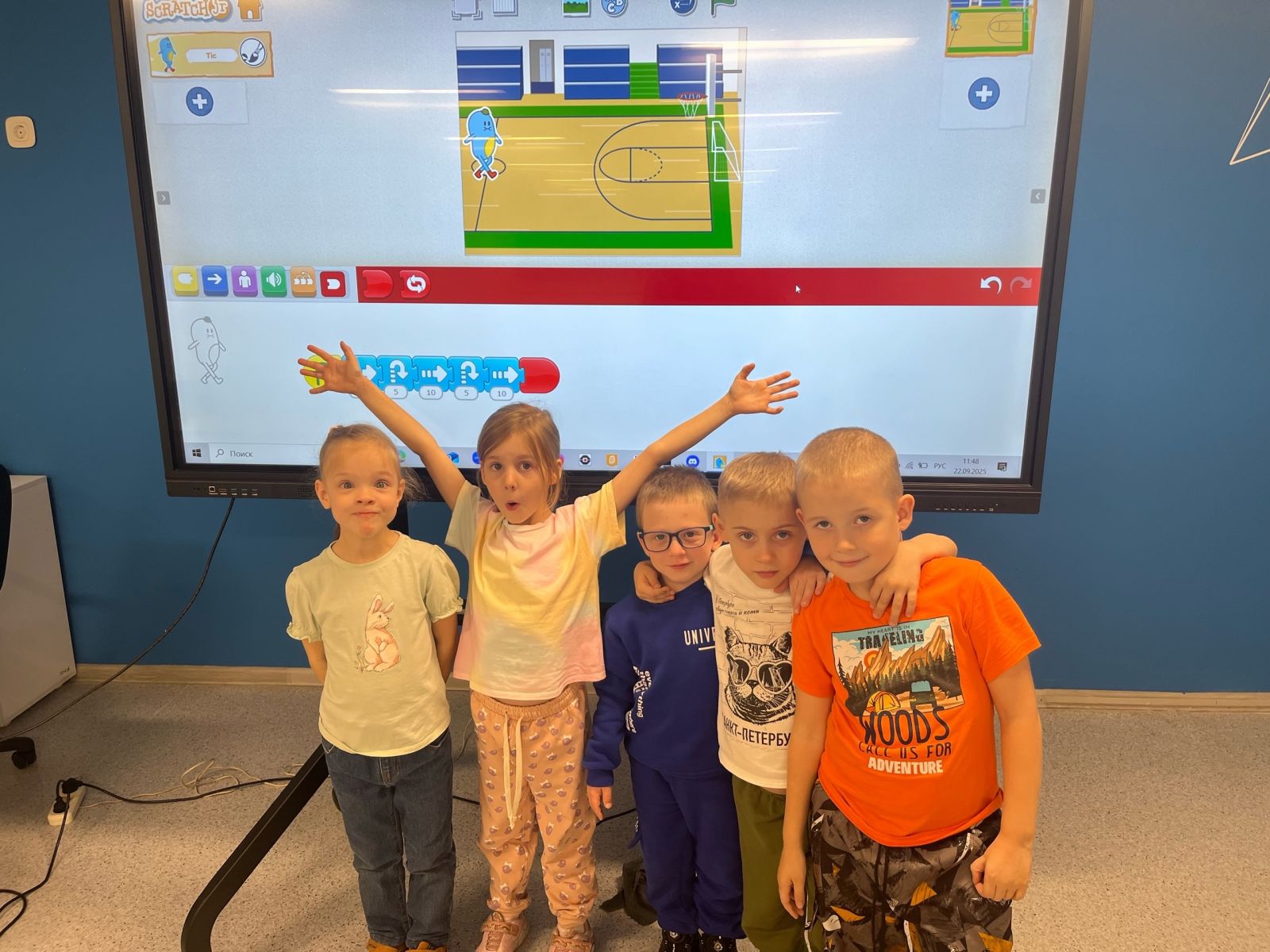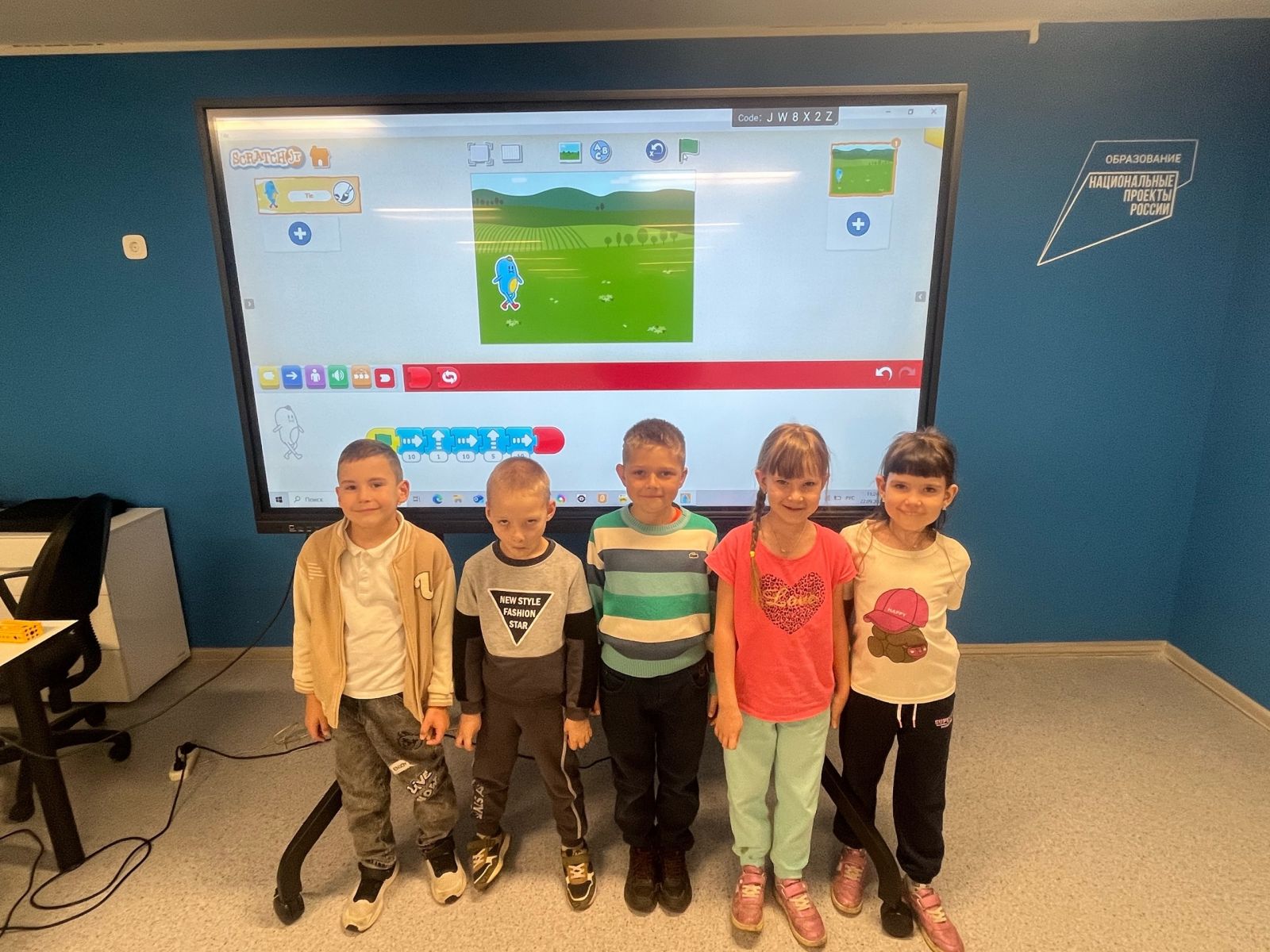 Педагоги с большим энтузиазмом встретили ребят и провели увлекательные занятия. Дети повторили правила техники безопасности при работе с компьютером, вспомнили как они работают и для чего нужны. Познакомились со средой программирования и создали первую программу, с помощью которой персонаж передвигался по выбранному фону.