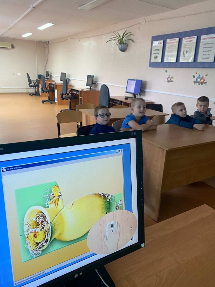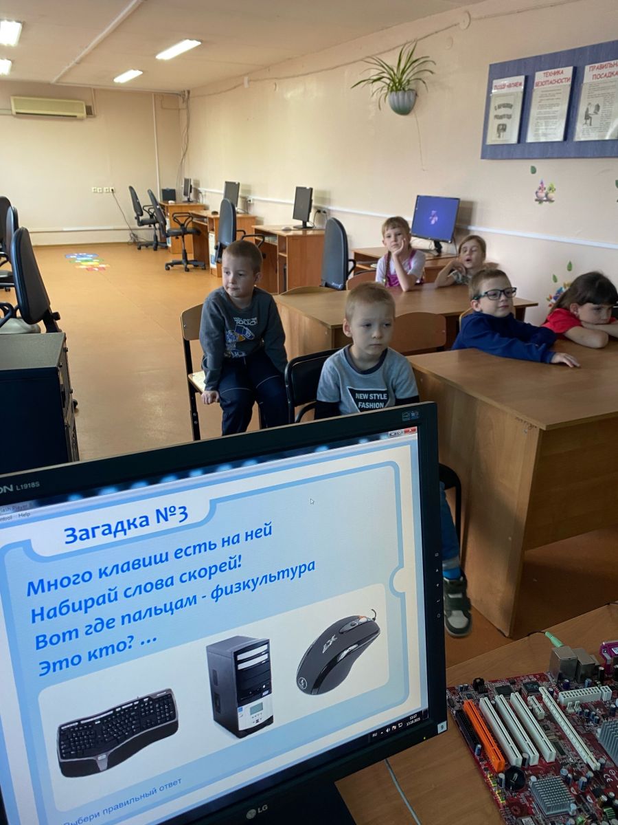 Ребята повторили правила работы с компьютером, отгадывали загадки про "мышку", монитор, принтер. На практике отрабатывали навыки работы левой кнопкой "мыши".