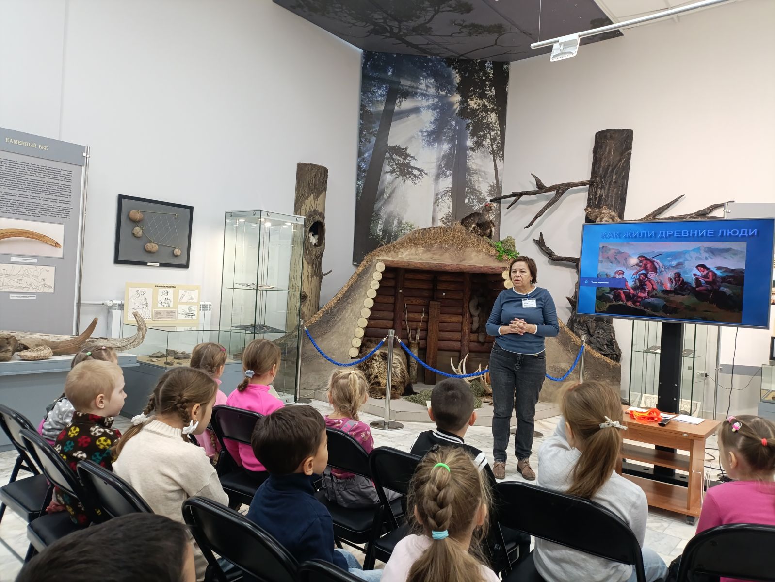 Юные участники узнали об общинной жизни древних людей, о навыках выживания в пещерах, землянках и шалашах, о том, что их жизнь зависела от охоты, рыбалки и собирательства. Также они узнали о том, как древние люди учили своих детей̆, и какие инструменты и материалы они использовали для рисования и создания посуды. Дети увидели разнообразные коллекции археологии, связанных с жизнью мамонтов (кости). Ребята прослушали сказку "Как собака друга искала", которая рассказывает о том, как собака искала своего друга среди животных. Также дети поиграли в игру с шаманом.